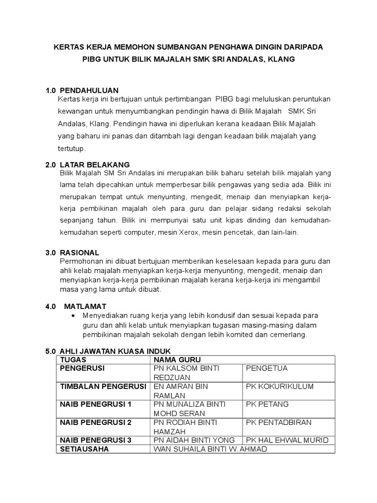 Kertas Kerja Mohon Sumbangan Penghawa Dingin Pdf